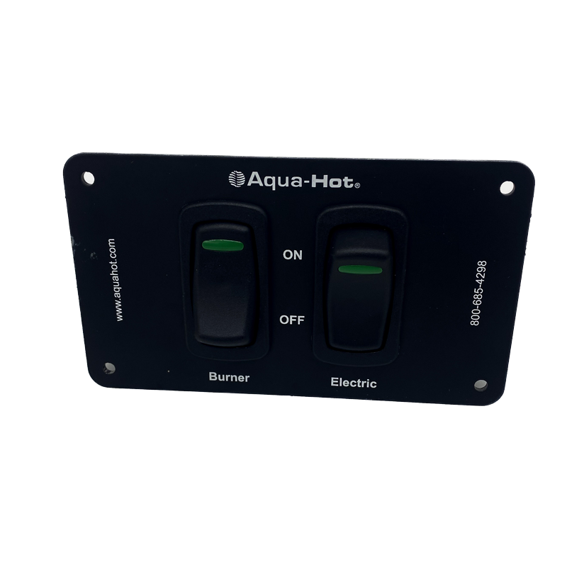 Designed for Aqua-Hot and Hydro-Hot Hydronic Heating Systems, this switch panel controls the heating sources for the boiler tank. Its intuitive layout features indicator lights that confirm active settings. Perfect for Class A Diesel Coaches or any motorhome with a hydronic heating system, this panel ensures efficient operation and comfort on the road.